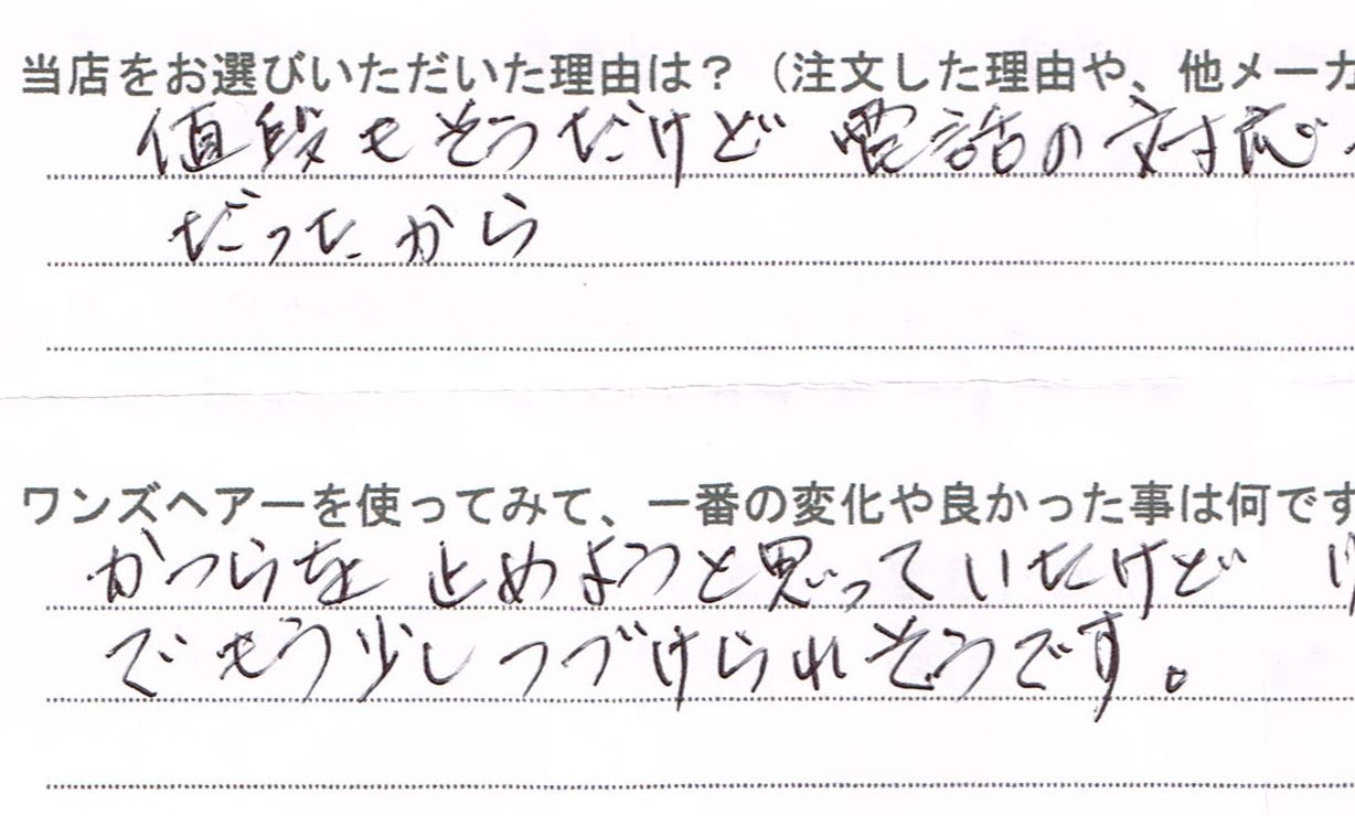 かつら25年 もっと早く出会っていれば良かった…(東京都)