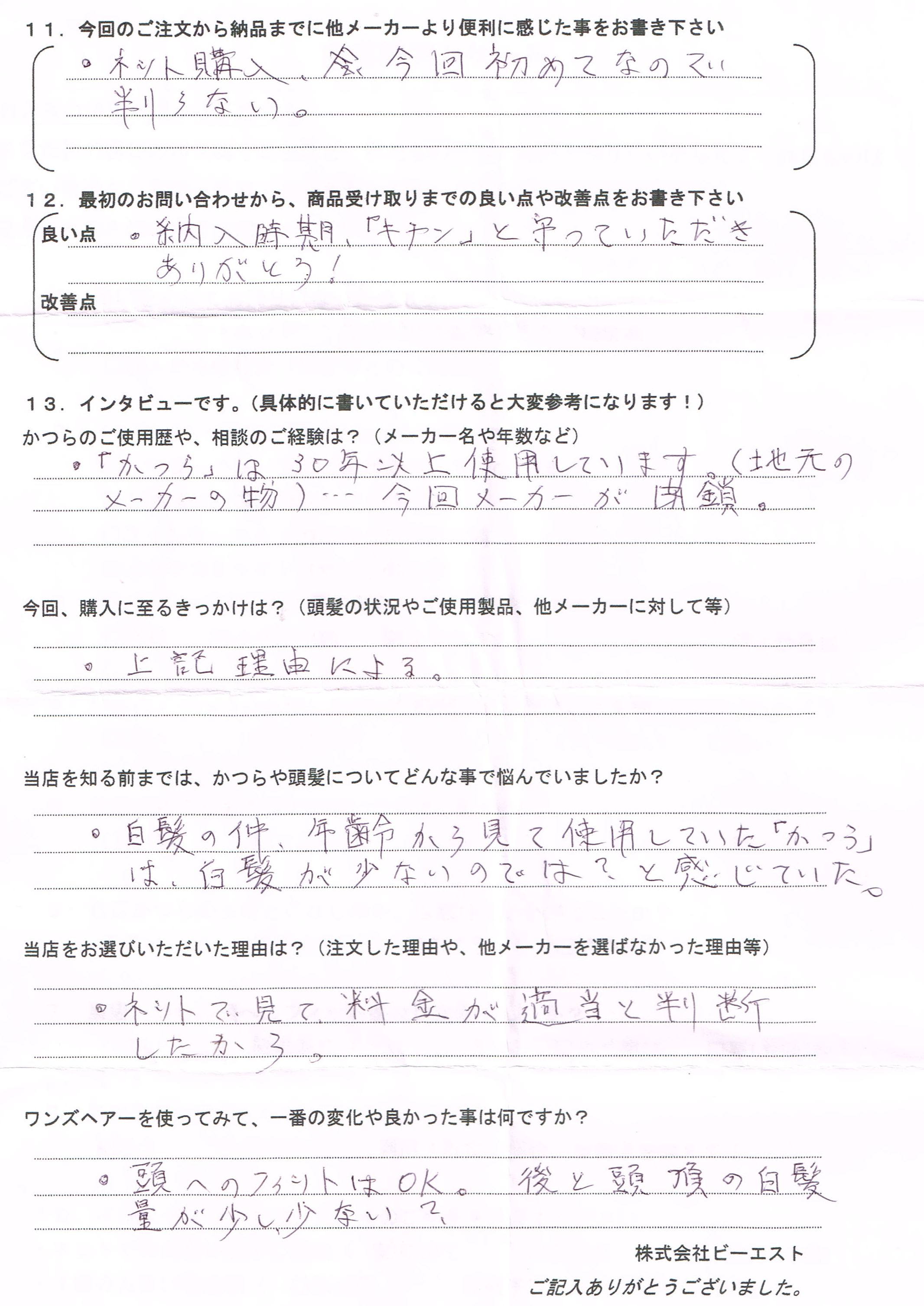今まで使用していたかつらは、年齢から見て白髪が少ないのでは?と感じていました。